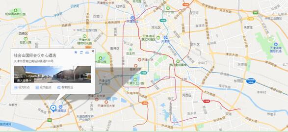 线路一:从天津火车站乘坐地铁3号线(南站方向)到天津南站下车,可乘坐312路到达社会山中心站下车(1站),步行200米到达酒店;