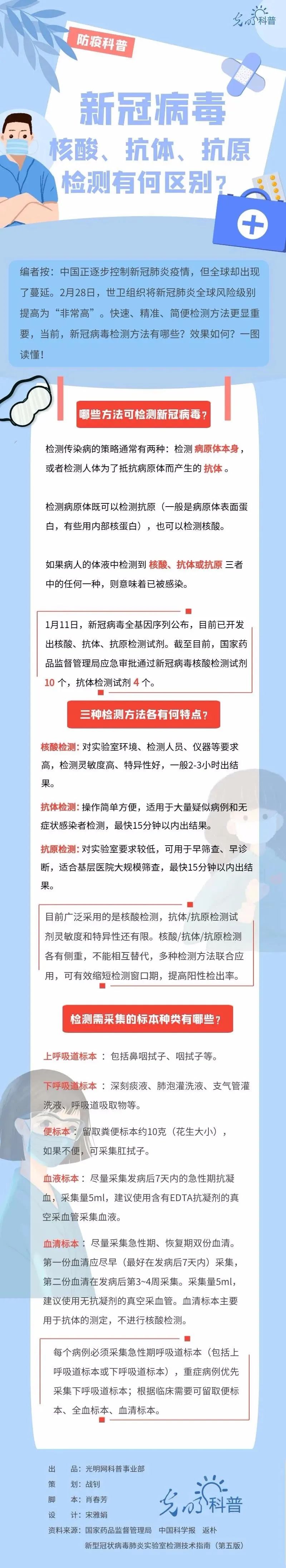 【科普知识】新冠病毒核酸检测、抗体检测、抗原检测有何区别?
