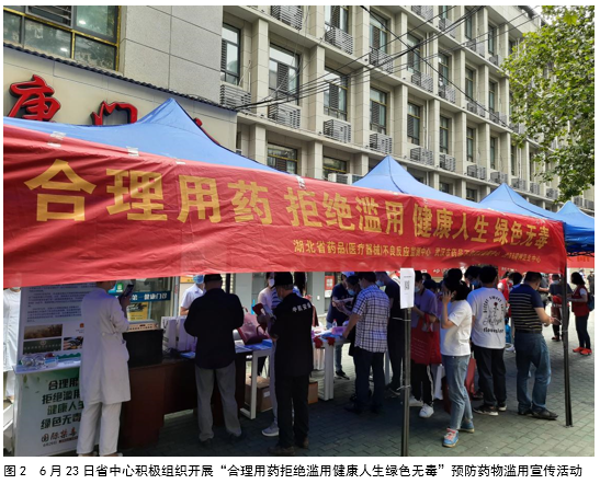 为深入贯彻实施《禁毒法》,推动药物滥用监测和禁毒工作,促进预防宣传教育,普及识毒、防毒、拒毒知识,6月23日上午,在第33个国际禁毒日来临之际,省局药品(医疗器械)不良反应监测中心联合武汉市药品不良反应监测中心、武汉市精神卫生中心,组织开展2020年“6•26国际禁毒日”宣传活动。