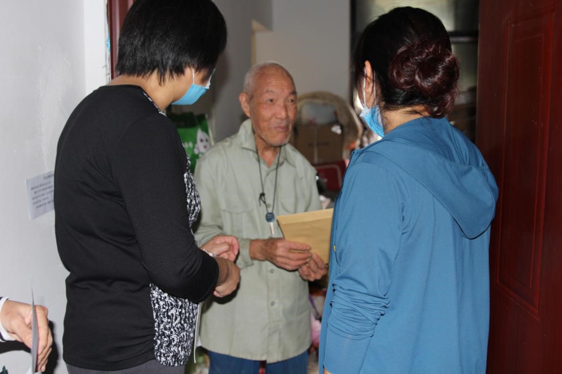 9月28日,院支部书记李艳春一行在九峰街同安里社区书记李华的陪同下走入了困难户家中,为困难群众送上了节日祝福和慰问品。慰问中,同困难户亲切交谈,详细询问老人的身体状况、生活上的困难、子女的情况等等,鼓励他们要以积极健康的心态,乐观的面对生活。