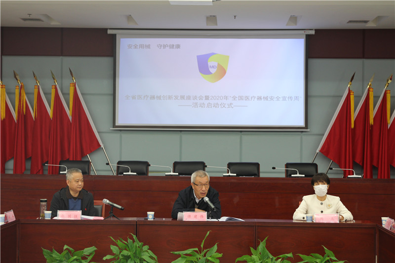 10月19日上午,按照国家局的统一部署,湖北省2020年医疗器械安全宣传周活动启动仪式暨全省医疗器械创新发展座谈会在省医疗器械质量监督检验研究院举行。省局党组成员、副局长傅建伟,武汉市东湖高新区管委会副主任冯立出席启动仪式,省局相关处室、分局负责人、省医疗器械协会和30多家医疗器械企业代表参加。