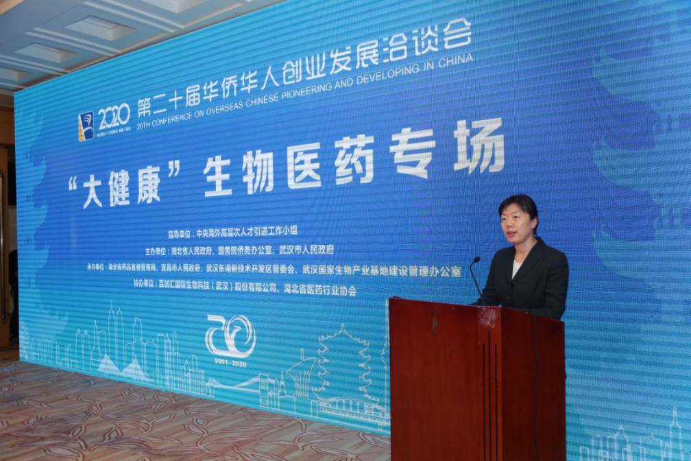 2020年11月19日下午,由中央海外高层次人才引进工作小组指导,湖北省人民政府、国务院侨务办公室、武汉市人民政府共同主办;湖北省药品监督管理局、宜昌市人民政府、武汉东湖新技术开发区管委会、武汉国家生物产业基地建设管理办公室;百创汇国际生物科技(武汉)股份有限公司、湖北省医药行业协会协办,2020华侨华人创业发展洽谈会大健康生物医药专场在武汉东湖国际会议中心隆重举行。