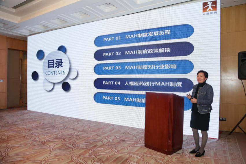 人福医药集团副总裁、总工程师李莉娥女士就“MAH制度对制药行业的影响”发表演讲