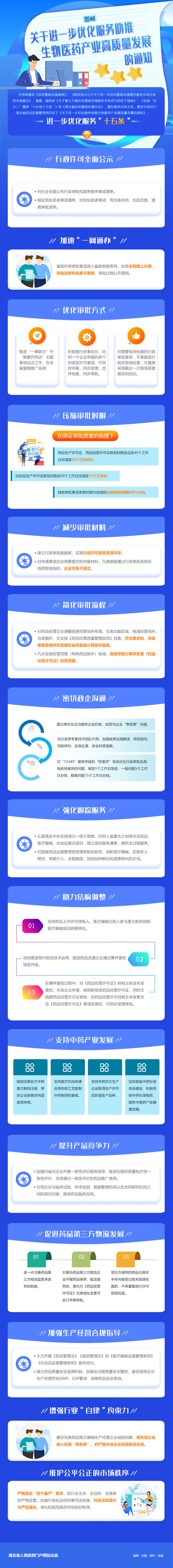 近日,湖北省药品监督管理局印发《关于进一步优化服务助推生物医药产业高质量发展的通知》,出台“十五条”措施,内容包括简化审评审批流程、密切政企沟通、鼓励产品研发创新以及维护良好市场秩序等,旨在更好地服务市场主体,优化生物医药产业营商环境,加快推动全省疫后重振和生物医药产业高质量发展。