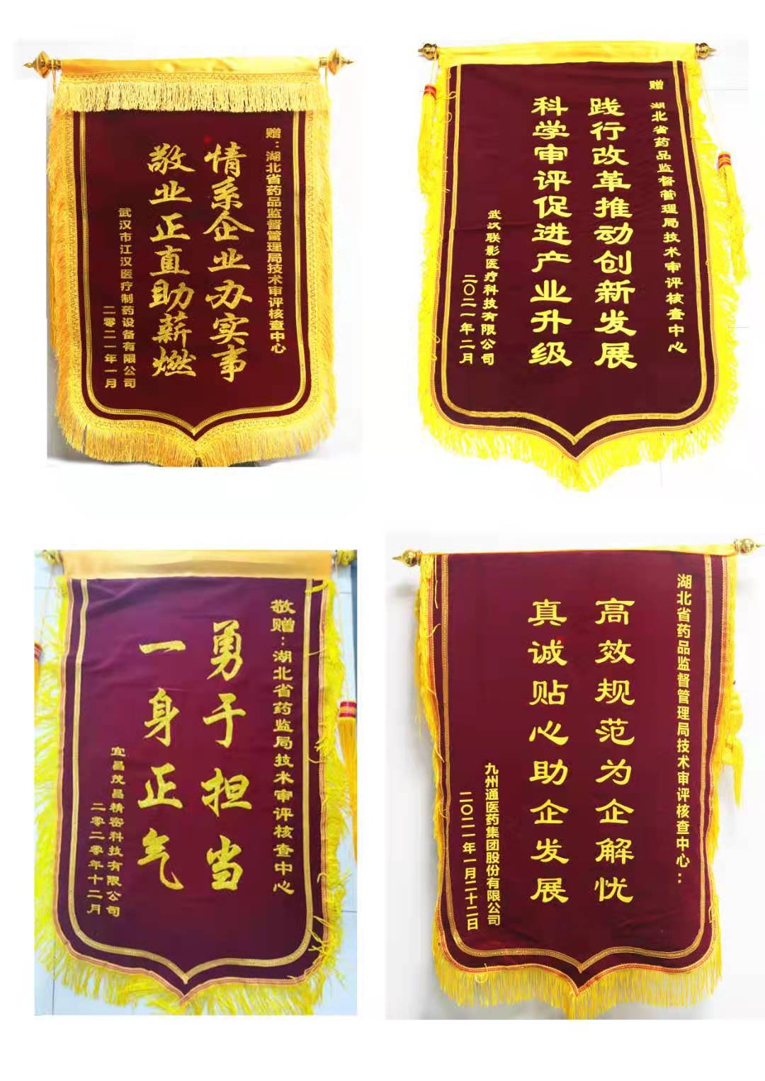 2021年伊始,江汉医疗公司、中旗公司、联影公司、宜昌茂昌公司以及九州通医药集团等多家企业负责人先后来到省局,向省局技术审评部门送来锦旗或感谢信,对省局为企业提供优质高效的审评核查服务、助推企业发展表示感谢。这已是省局技术审评部门近一年来收到的第14面锦旗、第7封感谢信。