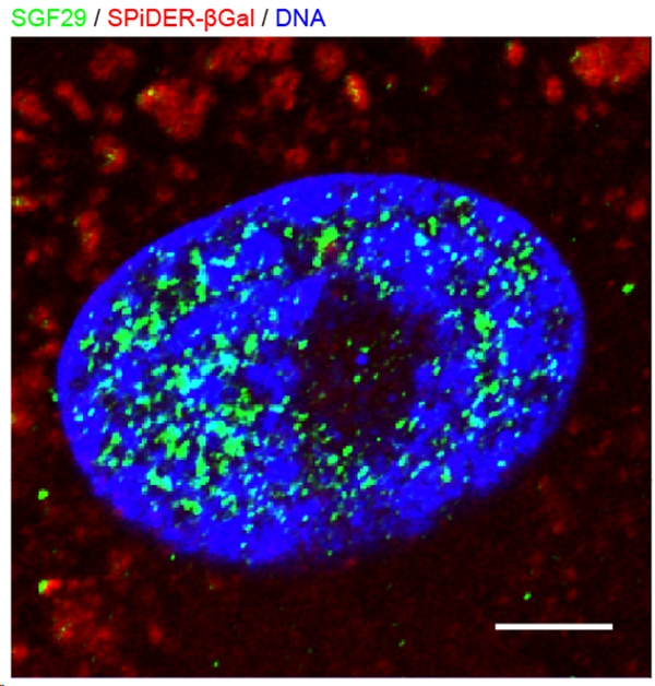 图1. SGF29在衰老的人间充质前体细胞核内形成蛋白凝聚体