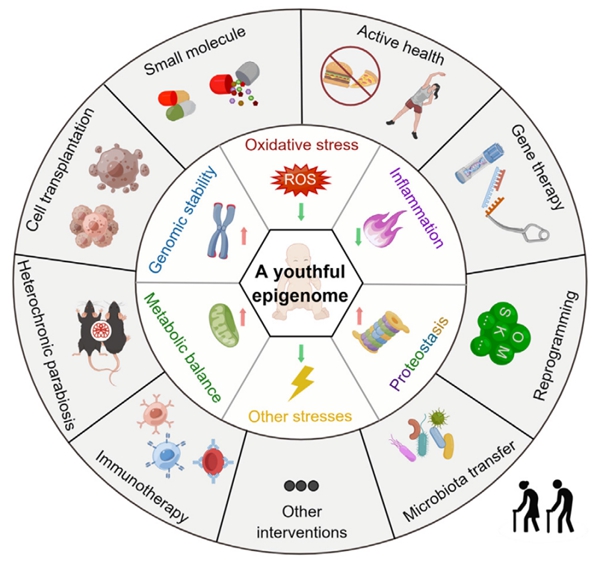 图:减轻应激、促进表观遗传重塑的衰老干预策略
