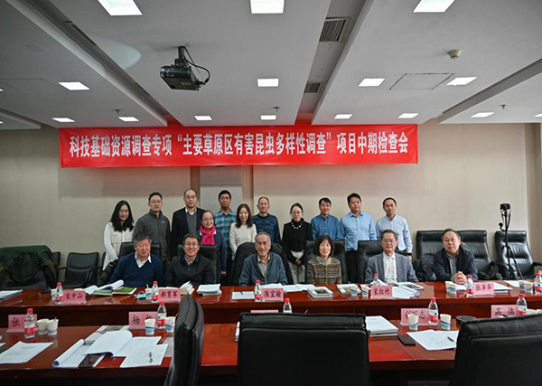 2023年2月17日上午,由国家林业和草原局推荐、中国科学院动物研究所主持承担的国家科技基础资源调查专项“主要草原区有害昆虫多样性调查(编号2019FY100400)”项目中期执行情况检查会议在北京中国科学院动物研究所召开。科技部国家科技基础条件平台中心调研处李笑寒项目主管、国家林草局科技司郝育军司长、宋红竹二级巡视员、项目主持单位中国科学院动物研究所乔格侠所长、项目检查专家组组长陈宜瑜院士、检查专家国家林草局草原司宋中山副司长、王卓然二级巡视员、国家林草局生物灾害防控中心闫峻正高工、中国农业大学彩万志教授、中国农业科学院植物保护研究所张泽华研究员,项目跟踪专家北京市农林科学院植物保护研究所张帆研究员、中国科学院东北地理与农业生态研究所吴东辉研究员以及财务专家科技部经费监管中心陈涛高级会计师出席了会议。