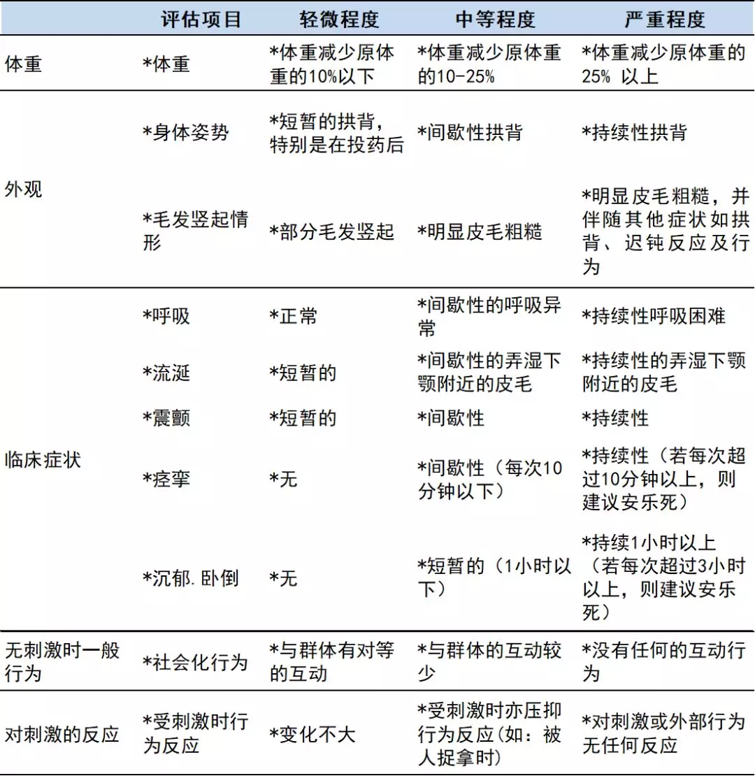 三、3种常见实验动物之疼痛程度评估表(一)大鼠疼痛程度评估表