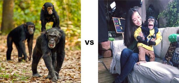 不过,已有专业人士支持这方观点。科普网站果壳网上的“河马叔叔”资料介绍是研究黑猩猩多年的博士生,曾到非洲由著名学者珍·古道尔创办的黑猩猩庇护所实地学习。他指出,节目中最不科学的一个地方是带小黑猩猩和父亲相认,因为雄性黑猩猩有两个黑暗的本能——惧外和杀婴。按照节目的说法,小黑猩猩Coco早就在刚出生的时候就被抱走了,它爸根本不可能认得它,其发狂表现其实是想把这只陌生的猩猩杀掉。 此外,节目中还能看到小黑猩猩们的各种负面反应:Coco撕咬饲养员,咧着嘴尖叫哭闹,双足直立并自己抓痒。这是学界用来判断黑猩猩是否不安的公认指标,但节目组对这些信号无动于衷。还有,可怜的小Coco被带去买衣服时在陌生人群中变得焦躁不安,不断挣扎,最后狠狠地咬了人。于是剧情峰回路转,成为“明星爱心泛滥,为安抚Coco,不惜放弃比赛”。而事实上,给小黑猩猩穿衣服根本没有必要。