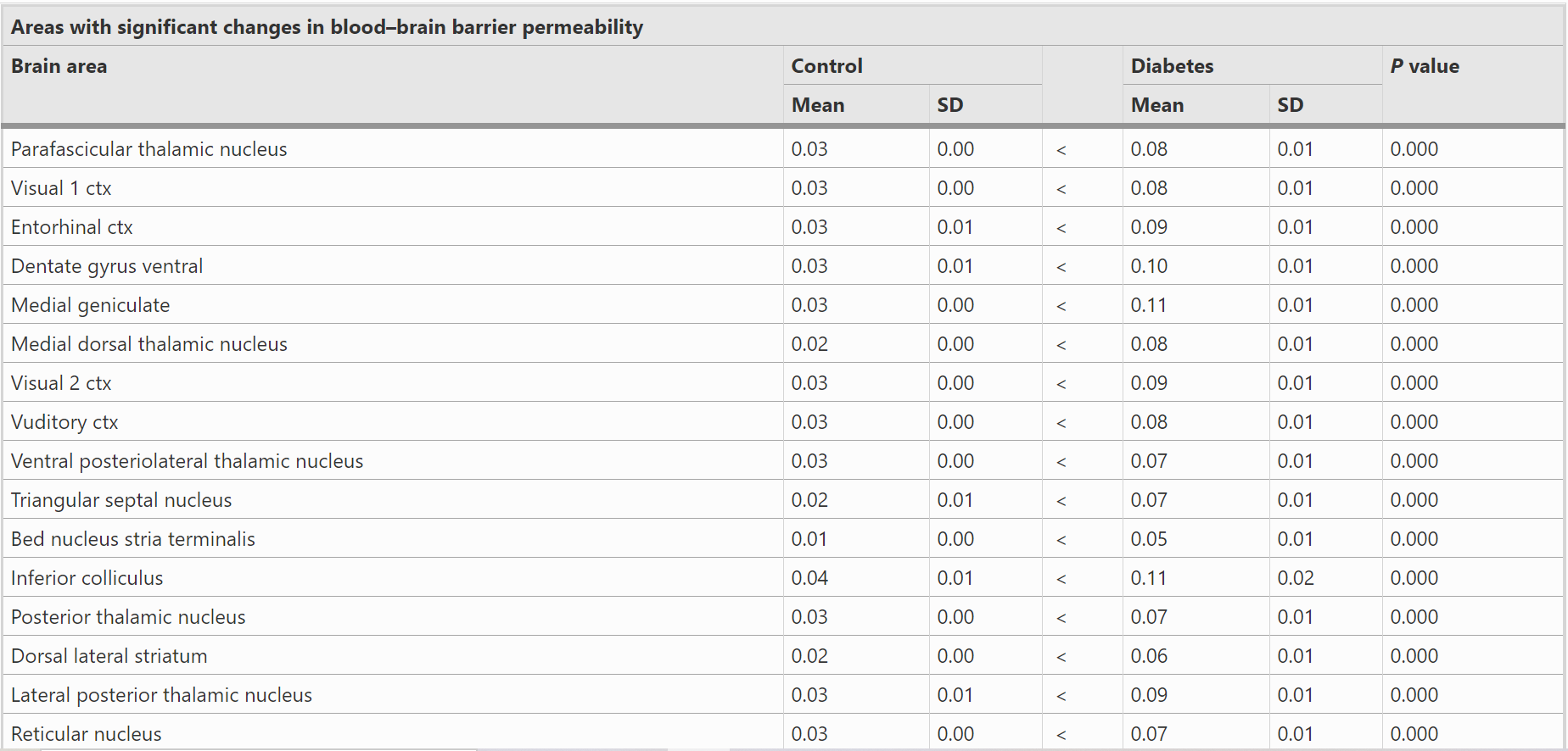 结论:通过血脑屏障通透性评估,发现2型糖尿病模型的小血管疾病普遍存在,包括大脑的大部分。血脑屏障通透性的增加可能是导致糖尿病性脑病和痴呆症的因素。