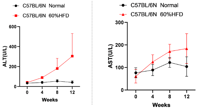 非酒精性脂肪性肝病(NAFLD)是一种无过量饮酒史,以肝实质细胞脂肪变性和蓄积为特征的临床病理综合症,包括单纯性脂肪肝、脂肪性肝炎、脂肪性肝纤维化和肝硬变。可从单纯性脂肪肝经非酒精性脂肪性肝炎(NASH)发展为肝纤维化,甚至导致肝硬化、肝细胞癌(HCC)或肝功能衰竭等终末期肝病。动物模型在阐明非酒精性脂肪肝的病理生理机制以及新药的开发中起着重要的作用。临床前研究需要根据研究的特定NAFLD表型使用不同的动物模型。NAFLD和NASH的临床前动物模型可分为四类:饮食诱导模型、化学物质诱导模型、基因编辑模型、复合模型。今天我们要讲的是饮食诱导的非酒精性脂肪肝小鼠模型。