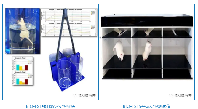 倒立悬尾和在光滑的玻璃杯里面游泳,都是让啮齿类动物不适的操作,动物在不适状态下放弃挣扎所需要的时间,可用于评判抑郁状态。抑郁水平高的动物更倾向于“听天由命”,更早放弃挣扎。