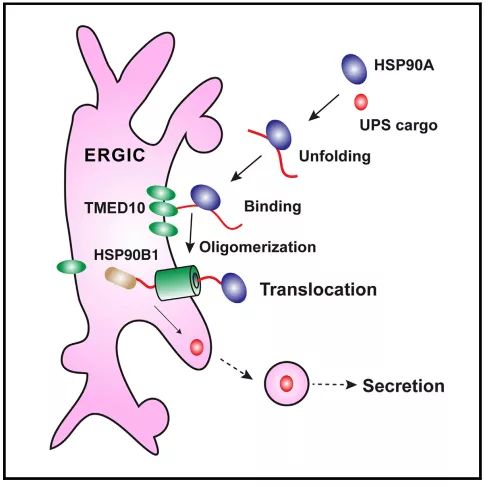 图1 TMED10介导的蛋白质非经典分泌途径工作模型