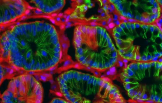 一旦形成,许多实验性肿瘤就会扩散到肝脏,就像人类结肠癌经常发生的那样。这些转移是结肠癌死亡的最常见原因。“这是结肠癌研究中缺少的部分。麻省理工学院生物学助理教授,麻省理工学院科赫综合癌症研究所成员,首席资深作者奥默尔·耶尔马兹(Omer Yilmaz)表示,确实没有可靠的方法来概括从结肠中的原发肿瘤到肝脏的转移进程。该研究的结果,发表在5月1日的《自然生物技术》上。这项研究是建立在科赫研究所所长泰勒·杰克斯(Tyler Jacks)最近的工作基础上的,他还利用CRISPR在小鼠体内产生了肺和肝肿瘤。“基于CRISPR的技术已经开始彻底改变癌症研究的许多方面,包括以更快的速度和更高的精确度建立该疾病的小鼠模型。这项研究是这两者的一个很好的例子,”杰克斯说。生物技术论文。该论文的主要作者是科赫研究所(Koch Institute)的研究附属机构,塔夫茨医学中心(Tufts Medical Center)的胃肠病学家,贾廷·罗珀(Jatin Roper),以及科赫研究所(Koch Institute)的研究科学家Tuomas Tammela。模仿人类肿瘤多年来,癌症生物学家采取了两种不同的方法来对癌症进行建模。一种是在实验室培养皿中培养永生化的人类癌细胞,即癌细胞系。Yilmaz说:“我们通过研究这些二维细胞系学到了很多东西,但是它们有局限性。”“他们并没有真正复制出复杂的体内肿瘤环境。”另一种广泛使用的技术是对小鼠进行基因工程改造,使其具有易患癌症的突变。但是,要繁殖此类小鼠可能需要几年的时间,特别是如果它们具有多个与癌症相关的突变。最近,研究人员已开始使用CRISPR生成癌症模型。CRISPR最初是由研究细菌免疫系统的生物学家发现的,由称为Cas9的DNA切割酶和靶向基因组特定序列的短RNA导链组成,告诉Cas9在何处进行切割。利用这一过程,科学家可以在活体动物的基因组中进行有针对性的突变,删除基因或插入新的基因。为了诱导癌症突变,研究人员将Cas9的基因和RNA引导链包装到称为慢病毒的病毒中,然后将其注射到成年小鼠的靶器官中。研究结肠癌及其受基因,饮食和衰老影响的Yilmaz决定采用这种方法在小鼠中产生结肠肿瘤。他和他的实验室成员已经在研究一种用于生长微型组织的技术,称为类器官-在这种情况下可以精确复制结肠结构的三维生长。