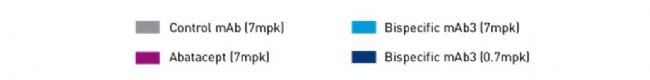 在GvHD患者中,Abatacept可以减少T细胞扩增和细胞因子释放,并提高生存率。与对照组相比,Abatacept和双特异性抗体剂量均证明了这三种效应。高剂量的双特异性抗体在研究最后几周的表现优于Abatacept。