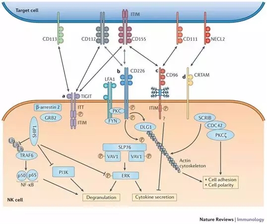 TIGIT在NK细胞中构成了一个以前未被重视的检查点,单独或联合其他检查点受体靶向TIGIT是一种很有前途的抗癌治疗策略。