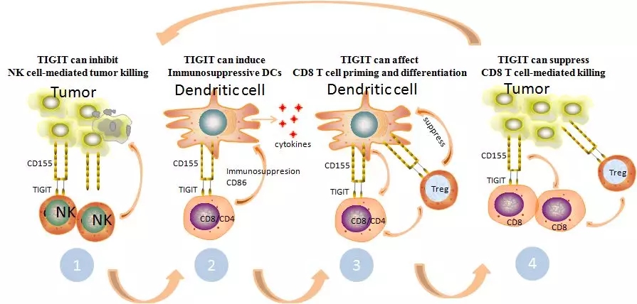 [2]Manieri NA, Chiang EY, Grogan JL. TIGIT: A Key Inhibitor of the Cancer Immunity Cycle. Trends Immunol. 2017 Jan;38(1):20-28. doi: 10.1016/j.it.2016.10.002.