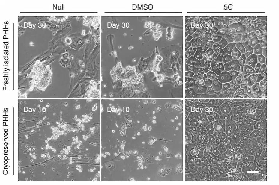人原代肝细胞在5个化学小分子的协同作用下,能够在体外长期维持功能。