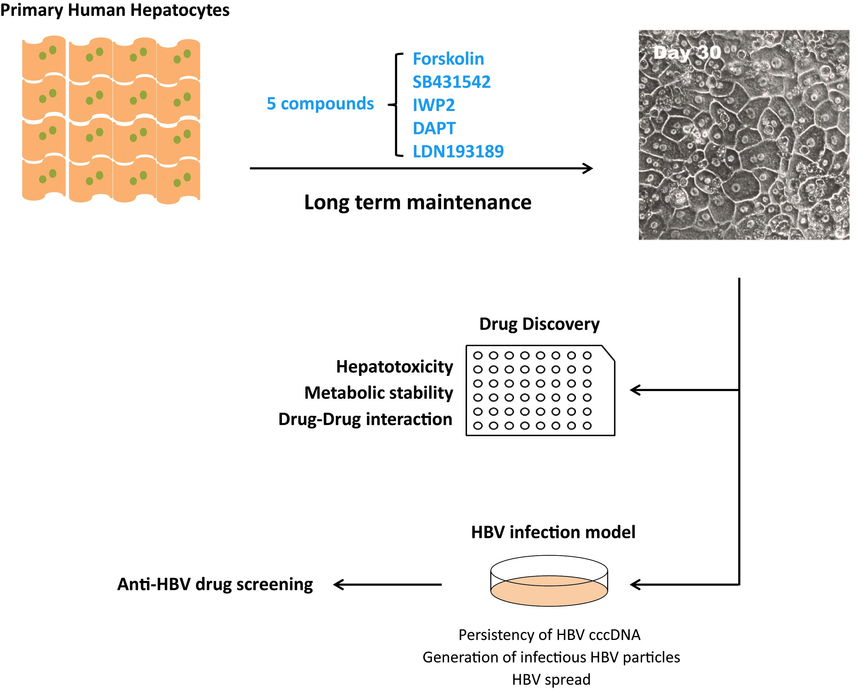 相形之下,丙型肝炎病毒的发现虽然晚于乙肝病毒,但基于有效的体外病毒感染模型,已成功筛选并获得治愈丙肝的药物。5C培养条件下的肝细胞支持乙肝病毒的高效感染,并能够长期产生cccDNA,可作为理想的药物筛选模型,为治愈乙型肝炎带来希望。