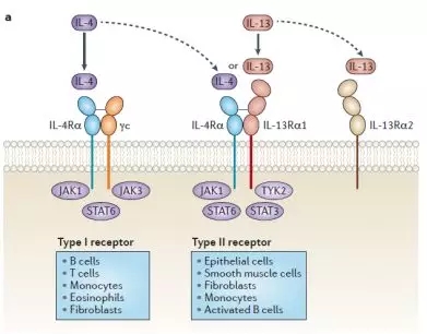 因此,IL4和IL4R的拮抗剂可降低体内IL4的水平,并可对哮喘患者发挥抗炎和抗免疫作用。IL4和IL4R被认为是治疗过敏和哮喘的明星靶标。
