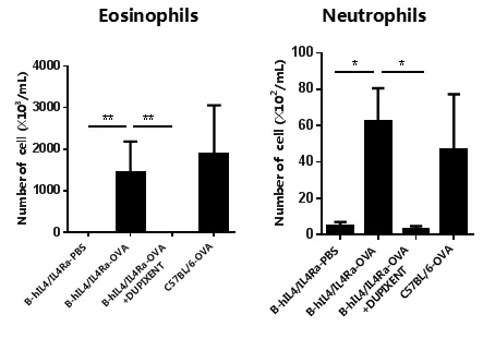 2、百奥赛图已经建立了稳定的哮喘模型,并基于B-hIL4/hIL4RA小鼠能够有效评价人源IL4RA抗体药效。