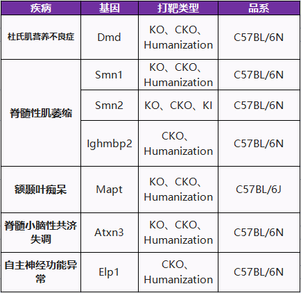 此外,针对脊髓性肌萎缩、自主神经功能异常、视网膜色素变性等神经/眼科疾病,赛业生物开发了一系列基因敲除的小鼠模型和人源化小鼠模型,也可以根据你的研究需求实现个性化定制。我们诚邀神经/眼科相关的研究人员们共同探讨,赛业生物期待与你一同为患者的康复之路奉献力量。