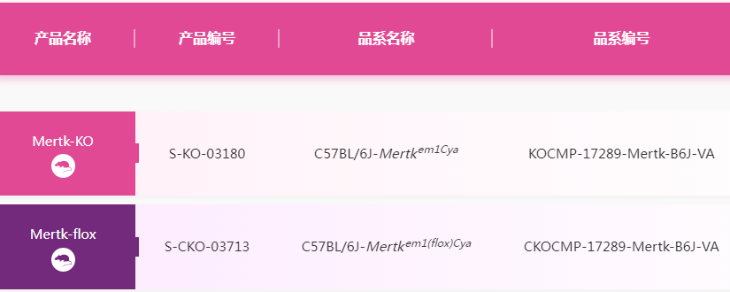 赛业生物可提供Mertk的KO/CKO小鼠品系