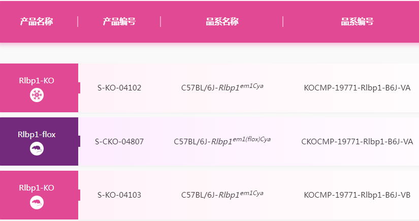 赛业生物可提供Rlbp1的KO/CKO小鼠品系