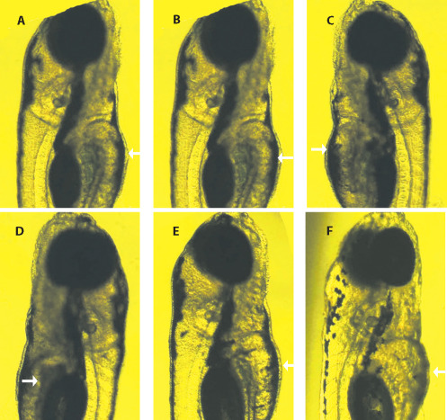 摘要:目的:用斑马鱼模型直观地评价马钱子急性器官毒性。方法:为评估急性毒性,我们初步确定马钱子给药24 h后的致死浓度。斑马鱼用五种小于等于LC10浓度处理24 h,观察马钱子对心脏形态、功能、中枢神经系统、肝、肾和器官特异性细胞死亡的影响。接下来,评估了毒性效应的可逆性。结果:马钱子对斑马鱼的不同器官有影响,包括心脏、中枢神经系统、肝脏和肾脏。马钱子诱导的毒性作用在一定程度上是可逆的。结论:斑马鱼模型适合于确定中药的毒性靶器官。关键词:斑马鱼 马钱子 毒性简介:马钱子具有悠久的使用历史,被广泛用于给药各种疾病,包括类风湿性关节炎和关节痛。它具有给药肿胀、炎症、兴奋中枢神经系统和减轻疼痛的作用。然而,它的给药使用常常受到其毒性强等问题的阻碍。因此,有必要加强马钱子配伍的研究,探索马钱子的有效配伍,降低其毒性,提高其功效。已经广泛证明斑马鱼是一种廉价且可替代的模型,用于快速评价候选药物的潜在毒性,因为它与哺乳动物和人类共享生理、形态学和组织学的相似性。斑马鱼与人的基因同源性高达85%。在信号转导途径和蛋白质水平上,功能域是高度保守的或结构上相同的。与传统的小鼠体内模型和体外细胞培养模型相比,透明斑马鱼胚胎在显微镜下可以观察到多个器官,为评估各种发育事件的药物效应提供了独特的优势。药效学、药代动力学和代谢物活性可容易评价。低成本、短周期、更少的试验化合物和高通量也使其成为研究开发毒性、致畸性、心血管毒性、肝毒性、行为毒性、肾毒性和一系列评价试验的使用模型。本研究以斑马鱼为研究对象,评价了马钱子诱导的急性毒性和器官毒性。斑马鱼模型被认为是一种替代或甚至更好的预测毒性模型。材料和方法:饲养水(0.137 mol/L NaCl、5.4 mmol/LKCl、0.25 mmol/L Na2HPO4、0.44 mmol/L K2HPO4、1.3 mmol/L CaCl2、1 mmol/L MgSO4、4.2 mmol/L NaHCO3(pH 7~7.2,电导率500~750μs/cm))中,水温28.5°C。死的和未受精的胚胎被去除。由于胚胎从卵黄囊中获得营养,受精后7天内不需要喂食。干燥的马钱子提取物被保存在干燥器中直到使用。在随后的生物测定之前,将全部提取物用饲养水重新溶解解(400μg/ml),然后稀释至工作浓度。给药:斑马鱼的不同器官在不同时期形成。为了确保药物致死性和急性毒性的可比性,对受精后2天的胚胎给药24h后评估中枢神经系统(CNS)和心脏。对受精后4天的胚胎给药24h后评估肝脏和肾脏。每个浓度,20斑马鱼分布在24孔板中,其中含有2毫升无菌鱼水,每孔两个幼虫鱼。在胚胎早期,保护性绒毛膜,可能会干扰药物吸收。为促进药物输送,受精后2天的斑马鱼在室温下用0.5 mg/ml蛋白酶溶液进处理15min。然后将2-DPF或4-DPF斑马鱼与药物孵育24小时。对于每个实验,未经处理的斑马鱼被用作测定对照。如果未处理的对照组中有10%的胚胎死亡或畸形,实验被认为是无效的。致死性评估:为了评估致死性,最初测试了10种浓度:0.01、0.5、0.1、0.5、1, 5, 10、50, 100和400μg/ml。在初步实验的基础上,最终建立了六个浓度。为了建立致死曲线,在处理24小时后,对暴露于不同浓度的斑马鱼存活数进行计数,死亡的胚胎被移除,因为死斑马鱼会崩解,阻碍计数。实验进行三次。分析计算LC50和LC10。器官形态/功能毒性评价:六种小于等于LC10的药物浓度,在致死性研究中测定,用于评估器官特异性毒性。如上所述进行药物给药。在评估心率和循环后,用M3-氨基苯甲酸乙酯麻醉斑马鱼,并使用立体显微镜进行视觉评估。百分之三的甲基纤维素用于固定斑马鱼以促进成像。器官形态或功能毒性的终点不同。异常心率、心动过速、心律失常、异常循环、心包水肿、心室形态异常等为心脏毒性评价标准,畸形脑为中枢神经系统毒性。肝脏大小和颜色是肝毒性,肾周围积液,囊肿形成,或躯干水肿是肾毒性。给药24h后细胞死亡评估:实验结束后,用磷酸盐缓冲盐水(PBS)洗涤两次,去除斑马鱼的过量药物,用1μg/ml吖啶橙染色。在28.5℃黑暗环境下处理0.5小时,用PBS溶液冲洗两次后用荧光显微镜观察斑马鱼。形态学/功能器官毒性可逆性评价:为了确定马钱子引起的急性毒性是否可逆,在处理24小时后,通过洗涤除去马钱子,并将斑马鱼在新鲜的鱼水中孵育48小时。最后,重新评估器官毒性。结果:LC10和LC50测定:受精后2天和4天的斑马鱼,用不同浓度的马钱子浓度从0.01μg/ml到400μg/ml处理24小时,用20条斑马鱼每浓度进行三次实验。在初步实验结果的基础上,在10μg/ml浓度下无致死性,400μg/ml可使所有2-DPF斑马鱼死亡,100μg/ml条件下死亡较少见。分别评估了额外的浓度,包括50, 100, 150、200, 250, 300、350和400μg/ml。4~DPF斑马鱼,浓度为100μg/ml时,有100%的致死率,在浓度为5μg/ml时无致死性。最后,测定了六种实验浓度的LC10和LC50,分别测定了5, 10, 50、100, 150和200μg/ml对2-DPF斑马鱼的心脏毒性和中枢神经系统毒性。分别测定了5, 10, 25,50, 75,和100μg/ml对4-DPF斑马鱼的肝脏和肾脏毒性。基于斑马鱼急性毒性试验的致死曲线,计算了马钱子对2-DPF或4-DPF斑马鱼的LC10,结果分别为22.2μg/ml和7.2μg/ml。为评价器官毒性,选择心脏和中枢神经系统的五种浓度分别为1, 5, 10、15, 20μg/ml,肝、肾分别为1, 2, 3、4, 5μg/ml。给药24小时后的器官毒性:马钱子对2-DPF或4-DPF阶段斑马鱼给药24 h后的器官形态和功能进行了评价。未经处理的斑马鱼同时进行评估。在给药后4