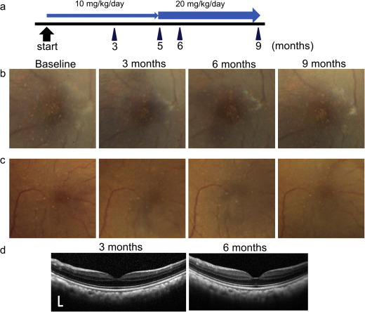 摘要:年龄相关性黄斑变性(AMD)是老年人致盲的主要原因。玻璃膜疣的出现是临床表现,是渗出性和萎缩性AMD的先兆。近来,基于抗体的药物已被用于治疗渗出型。然而,它们不能恢复患者良好的视力。此外,对于萎缩性AMD尚无有效的治疗方法。我们创造了小的化学物质,作为细胞内的ATP调节剂。在本研究中,我们研究了KUS121在C-C趋化因子受体2型缺陷小鼠(AMD小鼠模型)中的体内功效。全身给药KUS121预防或减少玻璃膜疣样病变和内质网应激,然后基本上减轻脉络膜视网膜病变,显著保留视觉功能。实验证实玻璃膜疣影响的猴长期口服KUS121不引起系统并发症。KUS对ATP的调节可能是治疗DD和预防AMD疾病进展的一种新策略。关键词:细胞生物学 神经科学 眼科简介:年龄相关性黄斑变性(AMD)是一种眼部疾病,其主要临床表现为中央视力的渐进性丢失。AMD是一种多因素的疾病,主要的危险因素是衰老,尽管遗传易感性和环境因素也影响疾病的发病和发展。就潜在的疾病机制而言,内质网(ER)应激导致视网膜色素上皮(RPE)的功能丧失和随后的视网膜神经细胞死亡。晚期AMD分为渗出性和萎缩性AMD两种类型,以病理学为基础。渗出型的特征是新产生的脆弱的脉络膜新生血管。因此,常伴有视网膜水肿、视网膜下积液,甚至伴有晚期出血。这些症状直接或间接损害黄斑的功能,即中央视力。不管晚期AMD的类型如何,常被称为玻璃膜疣的特征性沉积物在AMD的早期或甚至临床前阶段中经常被观察到。这些是RPE和Bruch膜之间脂蛋白的胞外积累。另外,在早期和中期AMD患者中,有50%例出现"视网膜样沉积物"-另一种类型的视网膜下积聚。值得注意的是,大约55%的视网膜下类尘螨沉积患者可能会出现渗出性或萎缩型晚期AMD。为了治疗渗出型的晚期AMD,已经使用了基于抗体的药物(例如抗血管内皮生长因子(VEGF)抗体)。这些药物导致新血管血管渗出性病变的暂时性改善。然而,一旦视网膜中央凹的感光细胞和视网膜色素上皮细胞受到新生血管的损害,视觉预后通常较差,即使积极治疗。另一方面,目前还没有治疗萎缩性AMD的方法。为了获得更好的视觉预后或阻止进展到晚期AMD,一种新的策略,针对疾病的早期阶段,如改善RPE功能或玻璃膜疣清除治疗。Valin蛋白是一种广泛存在于神经退行性变和生理活动中的ATP酶。最近,我们开发了新的化合物,其特异性地抑制VCP的ATP酶活性而不影响其细胞功能。我们把这些化学物质称为(KUSs)。KUSs可维持细胞ATP水平,从而起到ATP调节作用,从而在体内和多种病理条件下抑制内质网(ER)应激和细胞死亡。事实上,KUSs已经被证明在视网膜色素变性、青光眼和视网膜缺血动物模型中减轻视网膜病理。KUSs抑制视网膜细胞ATP的减少和细胞死亡,我们决定测试这些化合物是否能抑制AMD动物模型中涉及RPE的病理学。虽然没有动物模型复制AMD所有相关性状。C-C趋化因子受体2型(CCR2)缺陷小鼠已被报道能模拟早期和晚期AMD的脉络膜视网膜病变。在本研究中,我们对CCR2缺陷小鼠和玻璃膜疣食蟹猴给予KUS121,KUSs之一,我们调查该化合物是否影响动物的病理。CCR2缺陷小鼠的实验研究:为了增强视网膜色素上皮和脉络膜的免疫组化分析,在CCR2缺陷小鼠的视网膜中,我们反复地用白化病小鼠回交CCR2缺陷的小鼠,直到失去黑色素。环境保持在1 4/ 10h的光暗周期。所有小鼠均自由采食。在采集眼底图像或视网膜电图之前,肌肉注射氯胺酮(70 mg/kg)/甲苯噻嗪(14 mg/kg)混合物麻醉小鼠。用托吡卡胺和去氧肾上腺素(0.5%个)滴眼液将瞳孔扩张至直径约2毫米。KUS121在CCR2缺陷小鼠中的应用:六月龄的CCR2缺陷小鼠被分为KUS121治疗组(n=15)或对照组(n=11)。KUS121治疗组的小鼠自由采食含384.5 mg/L KUS121的水,对照组9个月至15个月时无需KUS121饮水。在评估视觉功能的实验中,被分配给KUS121治疗组(n=12)的CCR2缺陷小鼠在2个月至9个月的时间内口服KUS121;他们也随意地获得含有384.5 mg/L的KUS121的水。给予对照组(n=15)的CCR2缺陷小鼠口服给药(含5%克雷莫福的/磷酸盐缓冲盐水)。CCR2缺陷小鼠的眼科评价:在每个评价点进行以眼底为中心的彩色眼底照相并聚焦于深视网膜和视网膜色素上皮层。在每个评价点,用掩蔽评估器手动计数圆形黄斑病变的数目三次,然后对平均值进行分析。使用9个月大的CCR2缺陷小鼠进行暗视觉视网膜电图。小鼠麻醉前整夜暗适应。用一个发光二极管的金环角膜电极记录视网膜电图。将参考电极置于口中,将接地电极插入肛门。用0.3~500 Hz的带通滤波器对10 kHz的视网膜电图响应信号进行放大,并使用PrimeLablab 2/25进行分析。CCR2缺陷小鼠的组织学研究:在最后评价点进行眼科检查后,用戊巴比妥过量给小鼠安乐死,眼球摘除。在4℃下将眼用4%聚甲醛固定24小时,然后加入石蜡中。石蜡切片连续切割6μm。选择视网膜切片用HE染色。用抗CHOP抗体进行免疫染色。然后他们在显微镜下拍照。食蟹猴实验研究:本实验采用两只年轻(7岁和8岁)和三只老年(23, 23,26岁)黄斑区有玻璃膜疣的食蟹猴。所有五只猴子在开始时口服KUS121,10μg/kg/天(每天两次)。在眼科检查前20分钟,每动物滴注一滴托吡卡胺,使瞳孔扩大。然后用肌肉注射10毫克/千克氯胺酮麻醉猴子。每只猴子中,使用数字眼底照相机在基线和给药后3, 6,9个月获得数字化的眼底照片。对于黄斑区的形态和功能评价,SD-OCT和局灶视网膜电图也在给药开始后3个月和6个月进行。在聚焦
