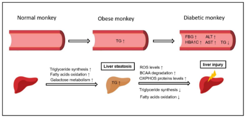糖尿病(Diabetes Mellitus, DM)是一种严重危害人类健康的代谢性疾病,是目前全世界发病率和死亡率最高的 5 种疾病之一。近年来,随着人们生活水平的提高以及人口老龄化问题逐渐加重,糖尿病发病率逐年上升。据世界卫生组织(WHO)报道,截至 2015 年,全球有 4.15 亿糖尿病患者,而中国是世界第一糖尿病大国。大量流行病学数据显示,肥胖是 2 型糖尿病发病的独立危险因素,但肥胖如何导致糖尿病还有很多未知。目前关于肥胖与 2 型糖尿病的研究,绝大部分是使用小鼠和大鼠等啮齿类动物,通过急性高热量食物诱导,或者化学药物损伤胰岛β细胞构建的。然而,这些非自然方式构建的啮齿类动物模型常常不能很好地模拟人类 2 型糖尿病。与此相反,非人灵长类动物如猕猴(Macaca mulatta)与人类的遗传背景和生理结构更为接近,其自发性糖尿病病程和病症与人类糖尿病更为相似,是研究人类 2 型糖尿病的极佳动物模型。中国科学院昆明动物研究所梁斌团队和中国科学院生物物理研究所刘平生团队合作,历经四年,对昆明动物所饲养的 2000 多只猕猴进行了大规模筛选,从中成功筛选出一批自发性肥胖和自发性糖尿病猕猴;进一步观察发现,这些猕猴的生理生化指标和人类肥胖和糖尿病非常接近。随后,他们和中科院上海药物研究所周虎团队合作,对自发性肥胖和糖尿病猕猴肝脏进行蛋白质组学研究。肝脏蛋白质组学数据分析和功能实验表明,自发性肥胖猕猴肝脏出现脂肪肝,脂肪酸氧化途径和脂肪合成途径明显上调。该表型和高热量诱导的小鼠模型差别很大,但和人类脂肪肝的表型十分类似。自发性糖尿病猕猴早期出现肥胖和高血脂,而晚期体重和血脂指标下降,出现明显的肝脏损伤;肝脏蛋白质组学显示,氧化磷酸化途径和支链氨基酸降解途径明显上调,肝脏损伤可能是肝脏中过多的 ROS 通过诱导线粒体释放细胞色素 c,并激活胞质中 Caspase3 所致。该研究首次揭示在自然状况下,由肥胖转为糖尿病过程中,肝脏能量代谢出现从脂肪酸氧化到支链氨基酸降解的转变,为肥胖导致糖尿病的发病机制提供了新的思路。该研究成果目前在线发表于美国生理学会期刊 American Journal of Physiology- Endocrinology and Metabolism。苏州大学和昆明动物所联合培养硕士生王俊龙、生物物理所博士徐式孟和上海药物所博士高婧为文章共同第一作者,梁斌、刘平生、周虎为文章共同通讯作者。该项工作得到国家自然科学基金、中科院先导专项、云南省自然科学基金、云南省高端科技人才项目等的资助。 - THE END -