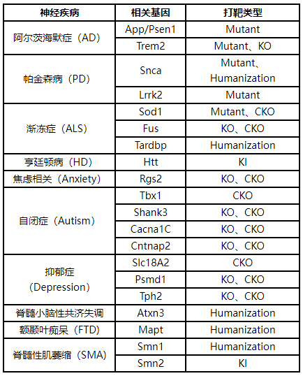 神经疾病小鼠模型推荐
