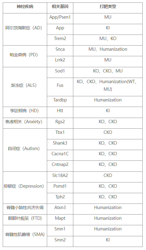 不仅仅是阿尔茨海默症,包括亨廷顿症、渐冻症等神经退行性疾病的疗法开发都依旧乏善可陈。针对此类神经疾病,赛业生物开发了一系列基因编辑小鼠模型,同时针对研究人员的需求,也可定制或合作开发基因编辑小鼠模型,如基因敲除、基因敲入、点突变、人源化小鼠模型及大小鼠手术疾病模型,加速神经药效学验证实验的开展。