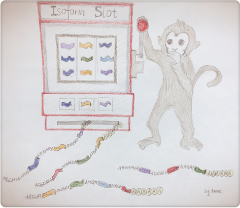 PacBio 技术恰好提供了这样一套系统,用于在全长转录本水平研究可变调控事件之间的搭配关系。本项工作充分利用 PacBio 测序单分子、长读长的优势,在人、猴中准确鉴定得到五万多例可变调控事件,并发现这些可变事件在单个 mRNA 分子上的组合满足随机搭配,这种随机搭配被该课题组称为灵长类 mRNA 形成的“老虎机模型”。正是由于这些可变事件通过随机组合模式形成 mRNA,导致目前领域内对灵长类转录组复杂性的认识严重低估:一方面,本研究发现高达 80% 的人类基因存在未被报道的新 mRNA 形式,而 1119 例新发现的 mRNA 是其编码基因的主要转录产物;另一方面,通过人、猴比较基因组学研究,发现即使在亲缘关系如此接近的两个物种中,众多 mRNA 存在明显的种间结构差异。进一步的群体遗传学研究表明,这些新发现的 mRNA 和物种特异性的 mRNA 受到明显的自然选择约束,提示它们已经具备了生物学功能。