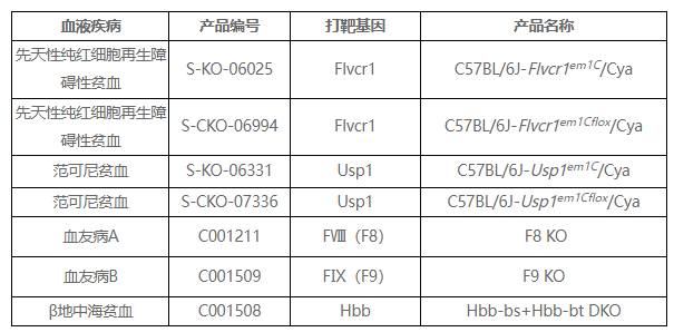 除β地中海贫血外,赛业生物还开发了一系列针对血液疾病(特别是血液罕见病)的基因编辑模型,包含基因敲除、基因敲入、点突变等类型,同时,我们也可根据研究人员的需求进行定制或合作开发。