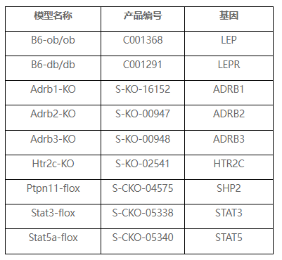 小鼠基因编辑模型在肥胖和其它代谢疾病机制研究和药物研发评价中起着重要作用,赛业生物拥有数千种自主研发的基因编辑小鼠品系,可提供包括LEP、LEPR、ADRB3和SHP2等在内的多种基因敲除或条件性敲除小鼠模型。同时也可根据您的科研需求进行专业化的定制服务,加速您的课题研究。