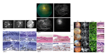 摘要:目前已有很多的脉络膜新生血管(CNV)和视网膜新生血管(RNV)动物模型。当评价和利用这些模型时,了解CNV和 RNV病理是很重要的。CNV和RNV是动态发展过程。玻璃膜的断裂和缺陷对CNV的发展是必要的。用激光诱导,通过手术或转基因小鼠的设置。一些转基因小鼠模型自发发展为RNV和或视网膜血管瘤增殖(RAP)样病变。RNV发病机制是众所周知的,一般是与缺血性视网膜病变相关。氧诱导的视网膜病变模型(OIR)与早产儿视网膜病变(ROP)类似。链脲佐菌素(STZ)大鼠模型发展的后期类似于糖尿病视网膜病变。本综述总结了CNV和RNV动物模型一般的类别和具体实例。没有完美的CNV或RNV模型,鼓励研究者根据各自需求选择最适宜的动物模型。关键词:脉络膜新生血管 视网膜新生血管 动物模型介绍:脉络膜新生血管(CNV)和视网膜新生血管(RNV)动物模型的发展促成对这些条件下生物学的理解。这些模型也被开发以测试新的治疗。虽然模型概括了许多人类的CNV 和RNV的临床表现,但模型发展的时间,病程进展,大小和外观的病变各不相同。具体介绍了各CNV和 RNV动物模型的优势和劣势。这个评论是全面的,而不是百科。脉络膜动物模型:脉络膜新生血管(CNV)是对特定刺激的非特异性反应。众多的脉络膜视网膜疾病中CNV是一个具有启动、维护和退化阶段的动态过程。退行期的特点是减少相关的疤痕和纤维化的细胞因子的产生。CNV可能出现在新的或在不活跃的CNV区域被重新激活。CNV患者与年龄相关性黄斑变性每月增长约0.2盘区(DAs).CNV的发展开始于玻璃膜的断裂或缺损。这可能是继发性创伤性断裂,一个退化的过程,组织牵引和/或炎症。当这种情况发生时,脉络膜毛细血管内皮细胞,周细胞,成纤维细胞和炎性细胞进入视网膜色素上皮细胞(RPE)和/或视网膜下间隙。有炎症,血管生成和CNV的细胞外基质成分。由周围的细胞外基质细胞和内皮细胞生长和覆盖(ECM)介导的血管内皮生长因子(VEGF)和血小板衍生生长因子(PDGF)似乎是CNV形成所必不可少的。CNV的形成可分为三大类:炎症、血管生成和蛋白水解。这些系统是相互关联的。几个炎症系统在CNV中有牵连,包括补体系统,细胞因子和趋化因子。促血管生成因子在CNV刺激血管内皮细胞增殖,包括血管内皮生长因子、碱性成纤维细胞生长因子(bFGF)和血小板衍生生长因子(PDGF)。蛋白水解组件包括一个临时的纤维蛋白基质奠定地,该地区将成为CNV的物理位置。纤维蛋白作为CNV生长支架。纤维蛋白来自循环纤维蛋白原的转化。组织因子(TF)受体是一种丝氨酸的共激活物,促进凝血酶和纤维蛋白的蛋白酶。TF也参与炎症反应,细胞粘附和血管内皮生长因子分泌。虽然凝血酶敏感蛋白有抗血管生成特性,它也增强了促血管生成的分子释放。细胞对CNV发病机制是关键的包括巨噬细胞和RPE巨噬细胞出现在这个过程中发挥关键作用,因为他们表达血管生成细胞因子(VEGF)和肿瘤坏死因子。RPE是过程的一个重要的调节器,由于它表达VEGF、MCP-1和IL-8,所有这些调节单核细胞和内皮细胞招募。CNV的动态阶段(起始、维持和退化)取决于在过程中细胞信号被打开或关闭。这些反对的信号包括促和抗炎,血管生成和蛋白水解。氧化损伤炎症激发年龄相关性黄斑变性,在CNV的血管生成中有免疫相关机制。年龄相关性黄斑区退化最广泛研究的炎症级联反应是补体途径,竞争性的蛋白增强或抑制这些途径。VEGF是CNV血管生成的主要发起者。血管生成因素包括血管生成素1和2,碱性成纤维细胞生长因子(bFGF)、血小板源性生长因子(PDGF),KDR/Flt-1及其他。 内源性血管生成抑制剂包括PEDF,血管抑素和内皮抑素。色素上皮衍生因子(PEDF)是一种天然的抗血管生成蛋白质。通过调节巨噬细胞活性,PEDF还具有抗发炎的特性。激光和光诱导的CNV模型:大鼠和小鼠: CNV的第一模型在灵长类动物上建成后,Dobi, 1989年创建了一个大鼠CNV模型。通过放大的瞳孔和角膜上的盖玻片,作者创造了氩激光光凝斑(647nm、100μM 50至100兆瓦,0.1s)。通过破坏玻璃膜创造了一个点有中央气泡形成或无视网膜内或脉络膜出血。创建24% CNV荧光素血管造影证据。通过光镜和电子显微镜对摘除的眼睛进行检查,显示CNV 60%病变的病理学证据。Frank和同事在1989年也开发了一个大鼠模型。该模型采用氪激光(蓝绿色或绿色的波长,500μM 50MW,0.02s)在玻璃膜及CNV制造破坏。采用氪激光诱导C57BL6小鼠,采用修改后的设置,包括一个较小的光斑尺寸,更高的强度,较短的持续时间(蓝色绿色或绿色的波长,50um 50至350μ400mW 0.05s)导致更高的CNV发生率(100%)。大鼠激光诱导CNV模型被用来研究组织金属蛋白酶抑制剂3和组织因子在CNV形成中的作用。它也被用于药物干预实验。在小鼠模型中血管内皮生长因子已被证明是CNV的主要刺激因素。在这个模型中免疫组织化学染色,特别是在转基因小鼠中,已被用来研究CNV的各种组成成分包括碱性成纤维细胞生长因子2(FGF2)和基质金属蛋白酶。Albert和他同事用循环光诱导CNV大鼠模型。在这个模型中,大鼠被暴露在3000-lux循环光照下,1,3,或6个月。结果表明:1个月时出现微观RPE新生血管,3个月时视网膜新生血管延伸到外视网膜,6个月时与视网膜血管相关联的多个区域组织出现新生血管。光暴露下动物的视网膜免疫组化染色HNE,衡量ω- 6多不饱和脂肪酸的过氧化指示氧化应激。灵长类、兔、猪:Ryan和同事研发了实验性CNV的