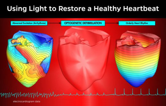 目前的除颤设备提供的电脉冲对病人而言是非常痛苦的,并且可以损坏心脏组织。霍普金斯大学和波恩的研究人员说:“心律失常是指一种可以在几分钟内导致病人心脏性猝死的不规则心跳。在心律失常的高风险下,以光为基础的疗法可以为病人提供一个更安全、更温和的治疗。”