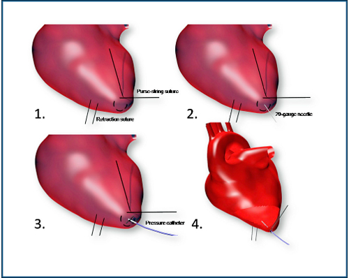 摘要:背景:心力衰竭是一个关键的条件,影响到许多人,往往是左心室功能障碍的结果。使用各种模型系统进行了大量的研究。研究人员必须能够准确测量心肌的性能以确定左心室功能的程度。我们采用了无线遥测系统不断评估兔模型中的左心室功能。结果:我们植入安装无线电发射机压敏导管到兔左心室。对于一个给定的基准周期时间内,我们连续记录心脏收缩和心室舒张指数。遥测系统使我们在整个记录期能够连续记录左心室参数的基线。在这段时间内,动物们是无拘无束的,完全有意识的。我们所记录的值同使用其他方法的报告得到的类似。结论:无线遥测系统可以连续测量兔模型中的左心室(LV)压力、心肌收缩力和心脏松弛。这些结果,得到的只是作为基线水平,证实这个模型系统有效的左心室评估需要进一步验证。背景:在左心室(LV)功能不全的情况下,周围的左心室的心肌在功能上被破坏,从而引起收缩受损和/或放松。其结果是泵血不足和局部缺血。左室收缩功能受损和/或左室舒张功能受损导致充血性心力衰竭(心衰),导致世界范围内的患病率增加。因此,左心室功能障碍是科学界调查研究的一个主题。收缩和舒张的程度都用来评估整体的左心室功能。关于收缩阶段,许多人使用心脏收缩性衡量左室收缩功能。心肌收缩力是心肌在一定肌肉长度下伸展的内在能力,它增加了交感神经刺激。心脏收缩力表示压力除以时间的最大变化,等容收缩期最大压力增加率(dp/dtmax)。另一个参数,收缩性的有用指标是Vmax,是收缩性缩短的最大速度。另一方面,心室舒张,是用来评估左室舒张功能。它通常表示为最大(负)压力除以时间的变化。(-dp/dtmax)等容舒张期代表压力降低。由于心室收缩和舒张,需要清楚全心脏周期的心室压力。调查人员,使用不同的动物模型,利用压敏导管植入动物心室。在一个理想的模型系统中,导管既有良好动物耐受性以及准确的压力读数。在兔模型,我们利用无线遥测来确定各种LV参数,包括左室压(LVP)、心肌收缩力和心肌舒张度。这种无线系统是有益的,动物不受约束,并完全有意识的,更准确地模仿正常的心血管疾病。方法: 兔和饲养:兔 7-8周龄 体重 1.5-2.0kg。供应商对动物进行健康评估,包括:血清学检测,表明动物无多杀性巴氏杆菌、嗜肺巴氏杆菌、支气管败血波氏杆菌、兔螺旋体、泰泽氏病原体,纤毛相关呼吸道杆菌、口腔乳头状瘤病毒,蠕虫和节肢动物寄生虫,寄生虫,原生动物。购入后动物配对或单独安置在兔笼中适应一周。动物房被保持在12:12-hr光:暗周期,温度范围在19到22°C和湿度30%到70%。一天170g饲料,自由饮水。遥测系统和手术植入:遥测设备购买于DSI,包括植入式发射器、接收器、数据处理设备和一种环境压力参考监视器。发射机有两条压力导管和两条信号线,仅使用了一个压力导管。未使用的导管/导线被固定在发射器附近。压力导管是一个14厘米的充满液体的导管,含有一个终端感测区,包含非可压缩流体和一种生物相容性凝胶。该传感区传输压力波到DSI发射器。发射器的校准是通过放置到一个密封的压力室,在750,850和950毫米汞柱的测量来完成的,输出被读取作为一个原始的频率输出,并作为发射机的校准值。每只兔子的数据记录在手术后的两个星期,确切的天数取决于动物的恢复水平。数据采集系统,采样频率为500赫兹,记录数据连续72小时,每20秒记录一次数据。连续监测心率参数,左心室压(LVP)、左心室收缩压(LVSP)、左室舒张末压(LVEDP)、dP/dtmax, Vmax, -dP/dtmax。LVSP定义为检测dp/dtmax峰后的压力,而LVEDP是定义为舒张压。兔子给予氯胺酮(50毫克/千克IM)、丁丙诺啡(0.05毫克/千克IM)和甘罗溴铵(0.1毫克/千克IM)作为插管前预麻醉。采用2.5mm的气管插管,3%异氟醚诱导,手术过程中维持麻醉为2-2.5% 。左耳静脉放置导管补生理盐水,速率30 ml/kg/hr. 手术过程中监测体温、心电、血压和血氧。使用加热垫对术中兔子进行加热。打开胸腔到空腔关闭为止,兔子呼吸每分钟15到30次。动物的左侧被毛被剃光,手术部位使用碘酊和酒精消毒三次。在第五肋间隙肌层注入1% buprivicaine(约0.5ml),每个注射间隔5cm,除了颈部至胸部区域。发射器的切口放置在腹壁的左侧,在最后一根肋骨后面大约4厘米。遥测发射器被放置在腹部区域后面的最后一根肋骨的皮下口袋里。之后,被缝合固定。一个皮肤切口,在第五肋间隙,作为发射器的压力导管皮下隧道的切口。之后,在第五肋间空间动物的左侧进行开胸手术。随着肋骨收缩,接近心脏顶点部位切开心包,在预定插入点的表面进行缝合。使用的回缩缝合,以稳定的心脏,一个荷包缝合被放置在左心室的顶点。将压力导管插入左心室,前插直到导管上的锚定缝合遇到心肌。荷包缝合后在先端收紧,进行导管固定。手动通风检查肺的功能,进行肌肉层和皮肤层缝合。植入手术后,单笼饲养,检查不正常的呼吸、疼痛和痛苦。手术后,提供热辅助直到兔子恢复正常体温。在术后48h给予Buprenorphine,严密监控动物,直到其正常饮食(约2周)。结果:心率和左心室压力:72小时的心率和以小时为平均值LVP数据。我们对四只兔子进行了手术,一只兔子的数据被排除在外,由于心脏性心律失常,被认为是由手术引起的。剩下的三只动物表现出正常的心率(200-300 BPM)平均有229~264次/分。兔平均LVP变化从52到63毫米汞柱,平均LVSP、LVEDP范围分别