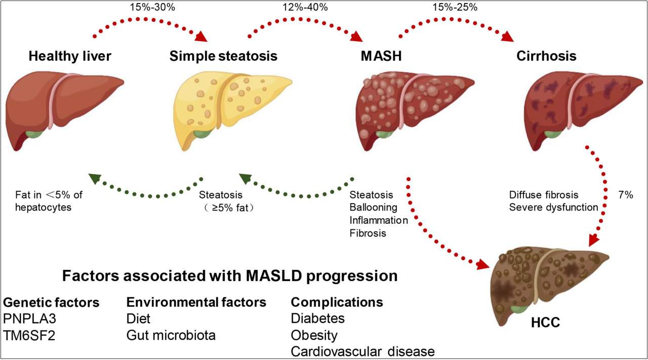 图1 代谢功能障碍相关性脂肪性肝病(MASLD)的疾病进程[3]