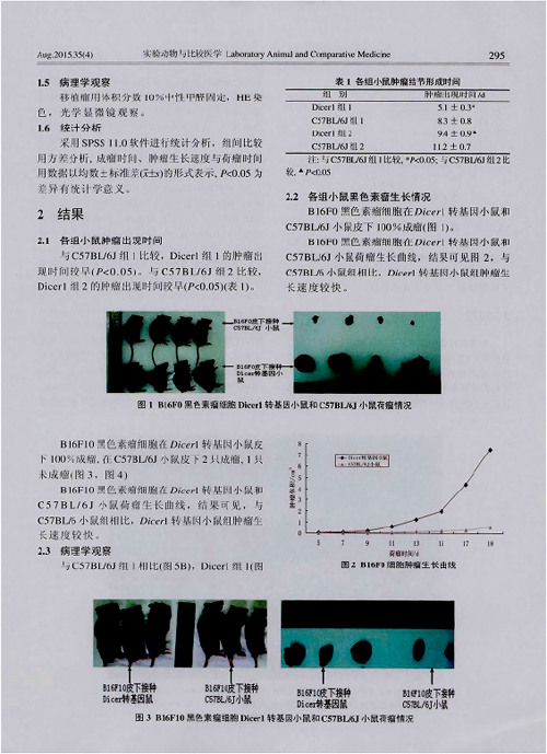 要的作用。本研究成功的应用 D icerl 转基因小 鼠建立黑色素瘤模型, 为进一步研究 D icerl 在黑色素瘤发 生、发展 中的分子生物学机制奠 定了基 础 。