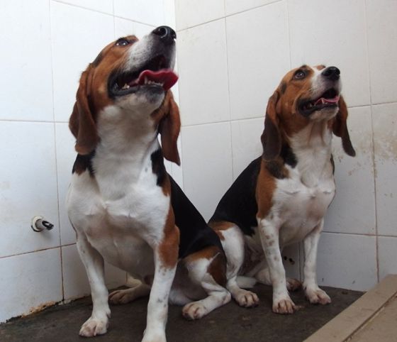 5月龄的肌肉生长抑制素基因敲除比格犬(左为大力神,右为天狗)