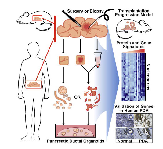 这些类器官完全是由胰腺导管细胞构成,除去了常常会污染胰腺样本的周围细胞类型。它们在一个充满生长诱导因子和连接纤维的复合凝胶样物质中生长为空心球体。一旦它们长至足够大,就可以将这些类器官移植回小鼠体内,完全重演出胰腺癌。论文的主要作者之一Chang-Il Hwang博士说:“我们现在获得了一个模型演示胰腺癌发展的每一个阶段。”