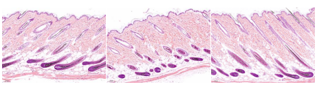 ②HE染色结果进行定量分析毛囊以及真皮层厚度。