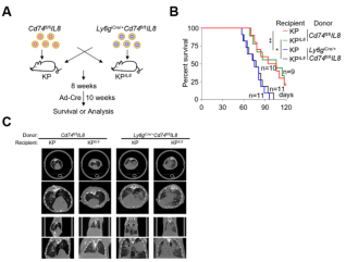 在这项研究中,研究人员利用人非小细胞肺癌肿瘤组织、非小细胞肺癌小鼠模型:KP与EGFRTD、IL8转基因小鼠、中性粒细胞特异性敲除小鼠Ly6giCre/+ (#C001310:赛业生物提供)、OT-II小鼠 (#C001199:赛业生物提供)、OT-I/CD45.1+ (#C001375:赛业生物提供)、 OT-II/CD45.1+ (#C001376:赛业生物提供)等材料深入研究了IL-8-中性粒细胞轴在调控非小细胞肺癌进展中的功能与机制。