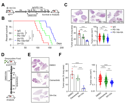 图4 5A能够增强Osimertinib或anti-PD-1治疗非小细胞肺癌模型小鼠的疗效
