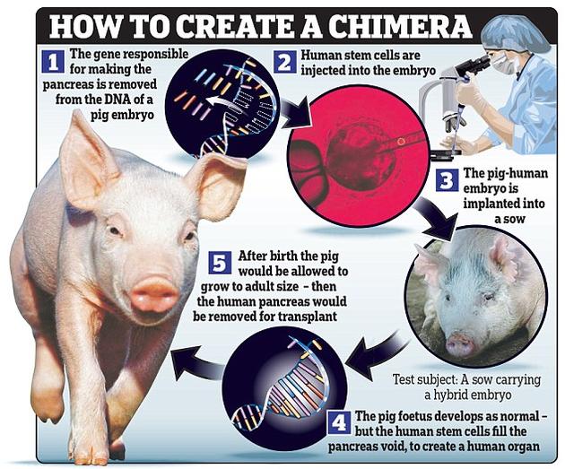 基本的设想是这样的:如果这样一个胚胎在一头成年母猪的体内发育成熟,那么这个胚胎将拥有由人类细胞所构成的器官。我们便可以采集这些器官并用于对病患的器官移植手术。