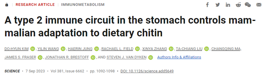 1. Do-Hyun Kim et al. A type 2 immune circuit in the stomach controls mammalian adaptation to dietary chitin. Science, 2023, doi:10.1126/science.add5649.