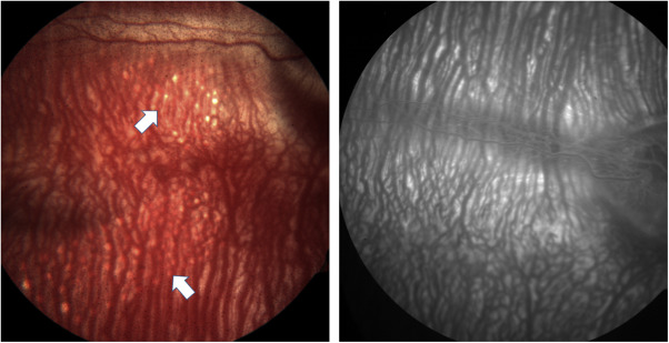摘要:视网膜前和视网膜下假体已被证明是一种有效的方法,能为晚期视网膜变性和深度视力丧失的患者提供一些视力。然而,这些患者的视野受到电极阵列所占面积的显著限制。在这项研究中,我们的目的是评估在单个眼睛植入多脉络膜上电极阵列的可行性,以增加植入视网膜假体的患者的视野。方法:17只,5至6月龄荷兰兔的右眼用于研究。多个不活动的定制电极阵列插入脉络膜上腔(SCS),并用眼底照相、光学相干断层扫描(OCT)和荧光素血管造影(FA)随访动物长达6个月。结果:在单个眼睛中手术植入多达8个电极阵列是可能的。兔没有出现任何重大并发症。电极耐受性良好,所有电极均处于原位。在整个研究中没有出现视网膜损伤。结论:多脉络膜上电极阵列植入是可行的,并可提供一种新的方法来增加植入视网膜假体的受试者的视野。关键词:脉络膜上 电极 阵列 视网膜假体 视网膜植入物简介:视网膜色素变性(Rp)是一种遗传性退行性视网膜疾病,它会导致光感受器和视网膜色素上皮(RPE)的特异性丢失,并伴有严重的视力损害。使用现有的视觉通路通过电刺激幸存的视网膜内神经元件产生视觉感知可以恢复这些患者的视觉。已经提出了不同的位置植入当前正在开发的刺激阵列。这些阵列可以放置在视网膜的表面上,在脉络膜上腔(SCS)内的视网膜下空间,巩膜组织内或巩膜表面。在所有的方法中,视野受到植入阵列的表面积的限制。大电极阵列植入可增加视野,但这需要大巩膜切口和相关并发症。宽领域的视网膜电极阵列,圆形,直径10毫米,可以通过类似大小的巩膜切开术植入AgUS II植入物,并已成功地植入犬体内。同样,19×8 mm的宽场脉络膜上电极阵列已成功地植入了猫体内。即使使用这些宽场电极阵列,视网膜的大部分也未被覆盖。多电极阵列的植入可能允许在眼睛的所有象限中放置电极阵列,显著增加植入视网膜假体的视野。本研究的目的是评估多电极阵列在兔体内植入的可行性。方法:家兔皮下注射盐酸氯胺酮(25 mg/kg)和盐酸甲苯噻嗪(6 mg/kg)的混合物麻醉。17只荷兰兔,体重2~3公斤,年龄5~6个月。仅用每只动物的右眼进行研究,随访期为6个月。局部应用盐酸苯肾上腺素2.5%和托吡卡林0.5%滴眼液放大瞳孔。试验材料:采用15~25μm厚、2毫米宽、8毫米长的惰性定制电极阵列,连接到相同宽度的电缆上进行植入。阵列由聚对二甲苯制成。外科手术:打开一个眼睑,用一滴5%聚维酮碘溶液滴入穹窿,清洗眼眶周围区域。建立巩膜切开术2 mm宽,角膜缘后4毫米。通过牵引或支撑角膜缘提供反牵引,直接与切口相对。在某些情况下,巩膜切口有脉络膜隆起,需要前房穿刺以防止30°超锋利刀片断裂脉络膜。注射GoooLo-GoAK?到脉络膜上腔(SCS)内,紧接在巩膜下,然后用钝性结膜钳将阵列在所创建的空间中推进8~10毫米。然后从巩膜切开部位切下约2毫米的冗余阵列电缆。每个电极阵列通过一个单独的巩膜切口插入。然后进行眼底检查以确保阵列不被放置在视网膜下间隙或穿孔到玻璃体腔。然后分别用6/0vicryl和8/0nylon缝线缝合巩膜切开部位和结膜周围组织。术后立即给予0.01~0.05 mg/kg的丁丙诺啡IM注射镇痛。术后30分钟给予庆大霉素局部应用,以减少感染的风险。眼科检查:检查包括眼压(IOP)测量,在手术显微镜下检查,光学相干断层扫描(OCT),眼底摄影,荧光素血管造影(FA)。在每次手术前,兔子麻醉,瞳孔如先前所述扩张。基线检查是在手术前进行的,随后每月进行随访检查直到随访结束。光学相干断层扫描,使用时域OCT系统,在阵列植入区进行5毫米单行扫描。眼底摄影与荧光素血管造影:使用边缘耳静脉建立静脉导管。然后注射0.2毫升AK-Fluor,然后用1毫升生理盐水冲洗。荧光素注射后立即拍摄眼底照片长达注射后5分钟。. 评估包括视网膜缺血、坏死或渗漏的区域。结果:临床检查和辅助检查:所有动物眼压在基线和随后的6个月均没有显著变化。眼科检查显示,结膜上的结膜积液最小,持续一周,此后逐渐减少。眼底检查没有发现任何异常。在白化兔中容易见到植入物。没有观察到植入物显示任何迹象的位移或迁移。另一方面,FA没有发现任何异常的血管渗漏或视网膜色素上皮的变化。植入物在FA图像上难以检测。OCT成像可显示植入物在SCS中的实际位置。覆盖脉络膜和视网膜没有显示任何层中断。在OCT成像上没有发现来自SCS的阵列迁移。术后六个月的眼底图像与一个月的图像相比,在植入的动物中没有发现植入阵列的侧向或轴向移位的临床证据。讨论:功能失调的感光细胞是视网膜变性的主要标志,是世界范围内视力丧失的主要原因。多年来,研究人员一直在研究恢复这些盲人的某些功能视力水平的方法。尽管RP和年龄相关性黄斑变性(AMD)患者视网膜外层重组和细胞丢失,但似乎视网膜内神经元保持信号传递的能力。先前的研究发现,干燥的AMD中神经节细胞的密度与正常眼睛没有显著差异,即使在几乎没有剩余感光体的视网膜区域中。内视网膜的电刺激已经成为一种众所周知的方法,在视觉通路中的一个位点上保持神经元活动,不管其潜在的致盲原因是什么。这种活动沿着剩余完整的视觉通路传播到视觉皮层,从而产生某种形式的视觉感知。虽然不同的视网膜假体系统共享相似的基本架构,但它们的具体设计多样化,取决于阵列的植入位置和植入电子的复杂性。不管阵列位置如何,磷光体